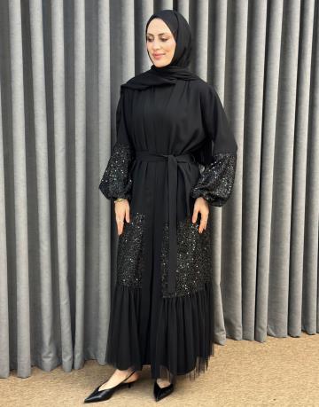 Siyah 0026 Essahra Royal Üçlü Abaya Takım