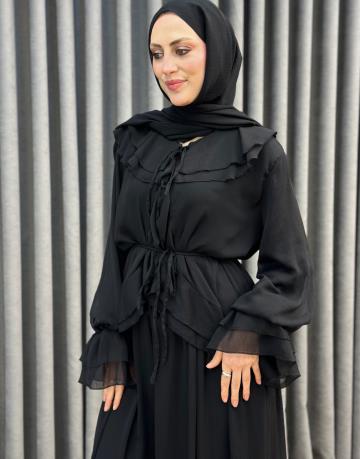 Siyah 8218 Ahel Yaka Kol Volanlı Şifon Takım