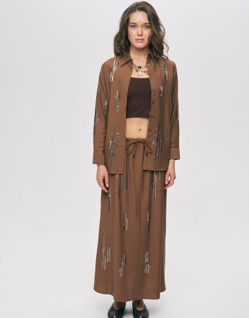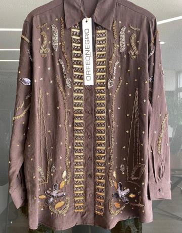 Kahve 34840 Özel Tasarım El İşlemeli Gömlek