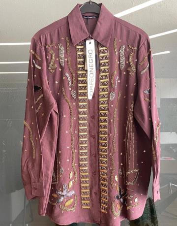 Bordo 34840 Özel Tasarım El İşlemeli Gömlek