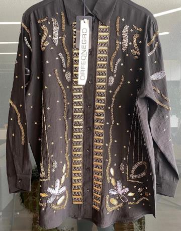 Siyah 34840 Özel Tasarım El İşlemeli Gömlek