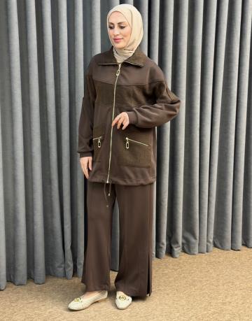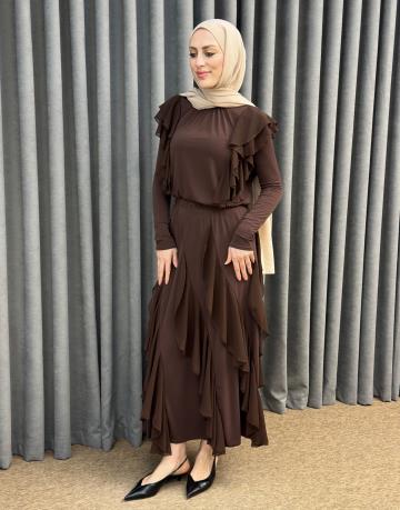 Kahve 3039 Qashe Fırfırlı Etekli TAKIM