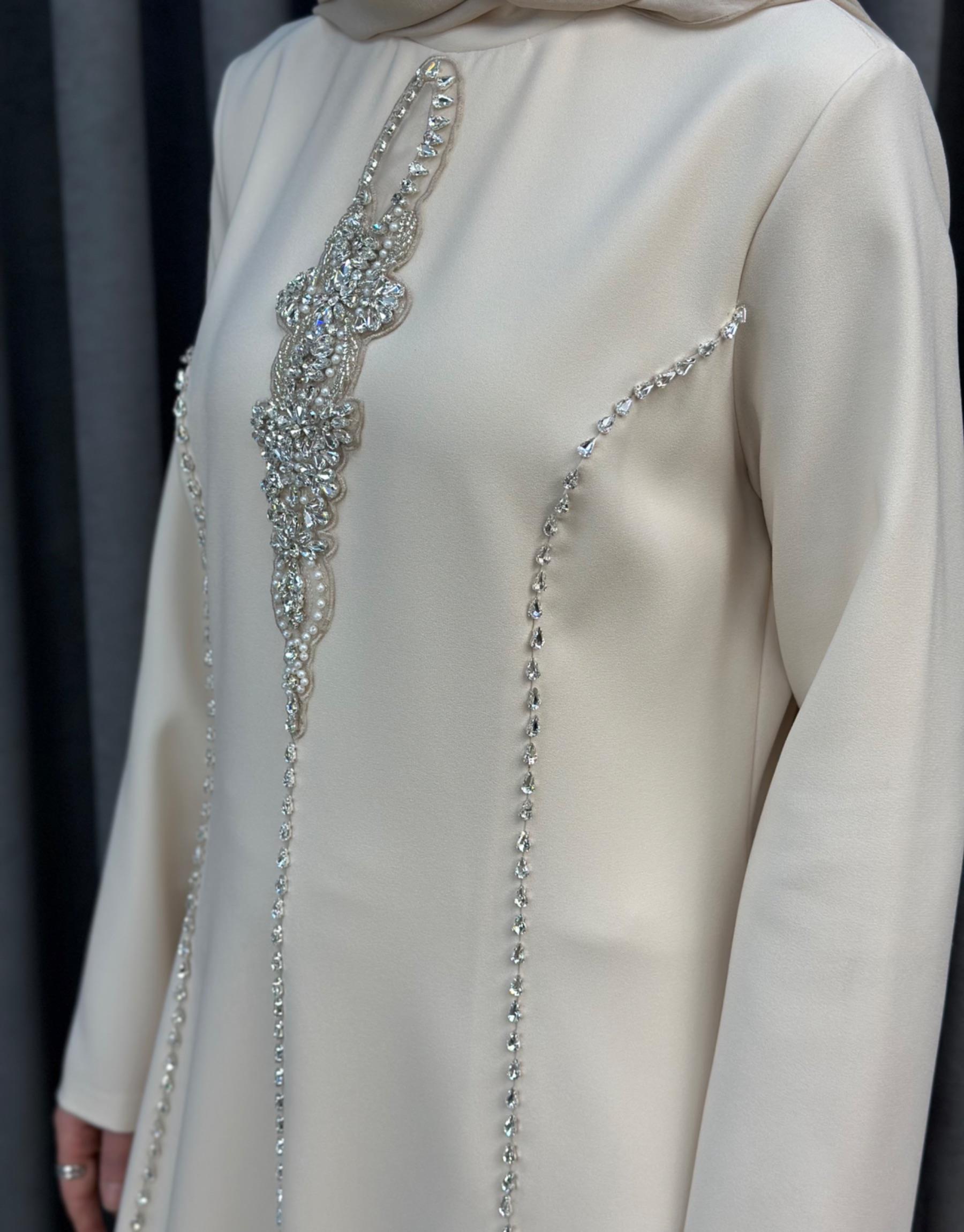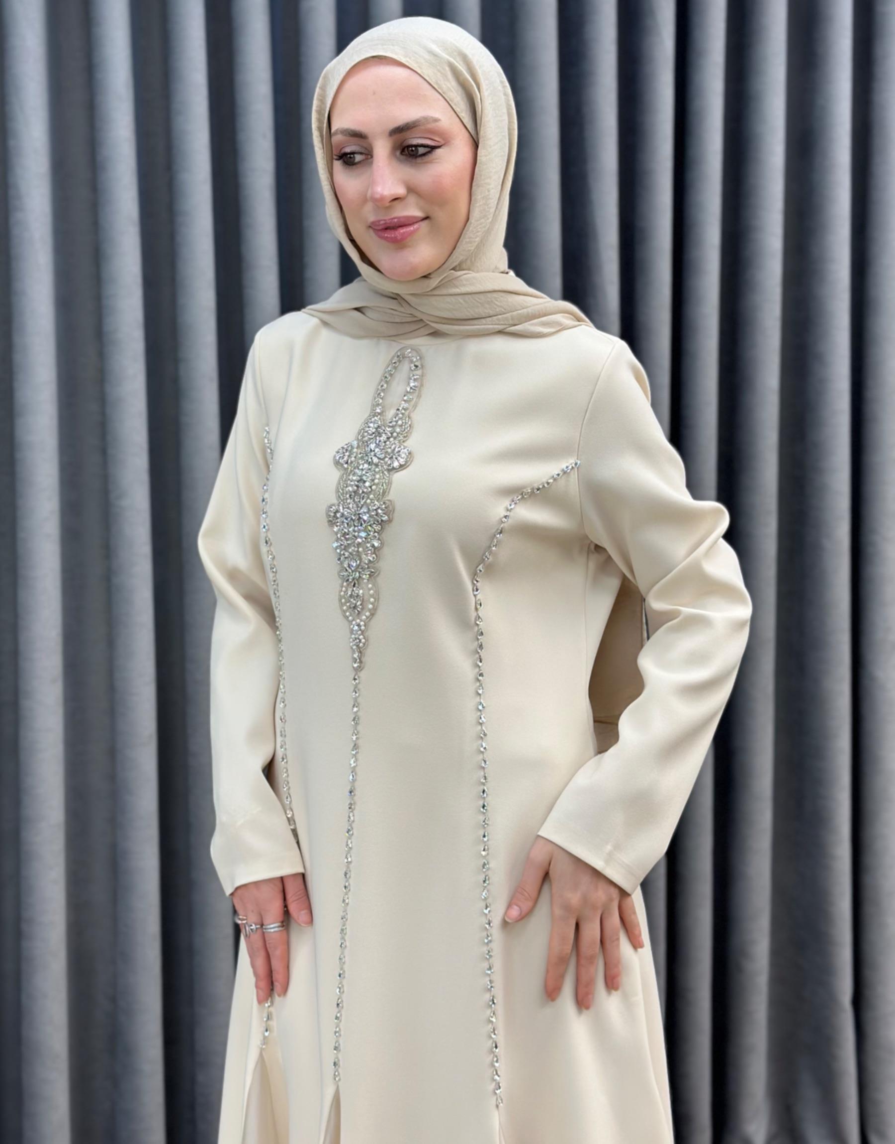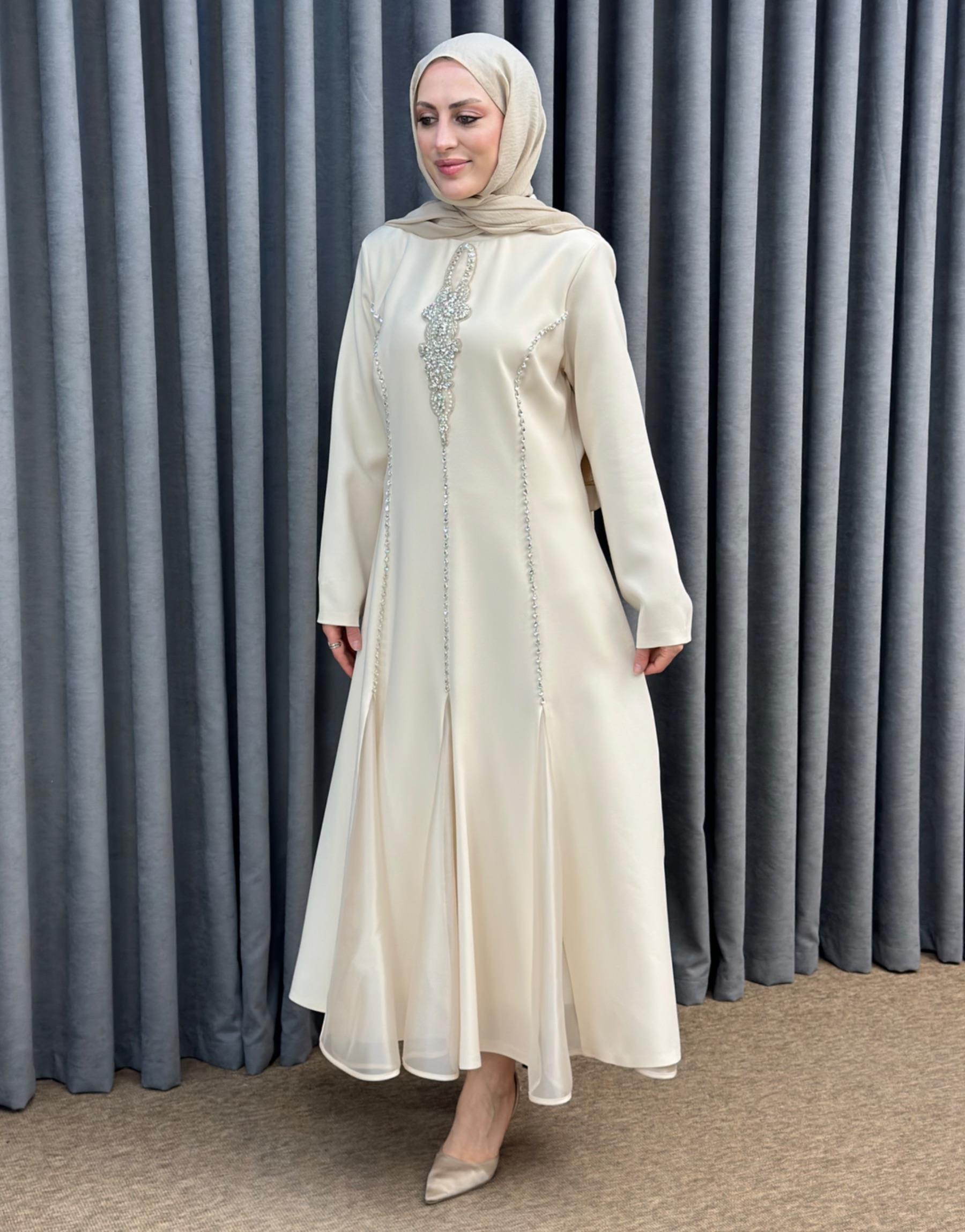 Bej 2897 White Corner Abiye Elbise