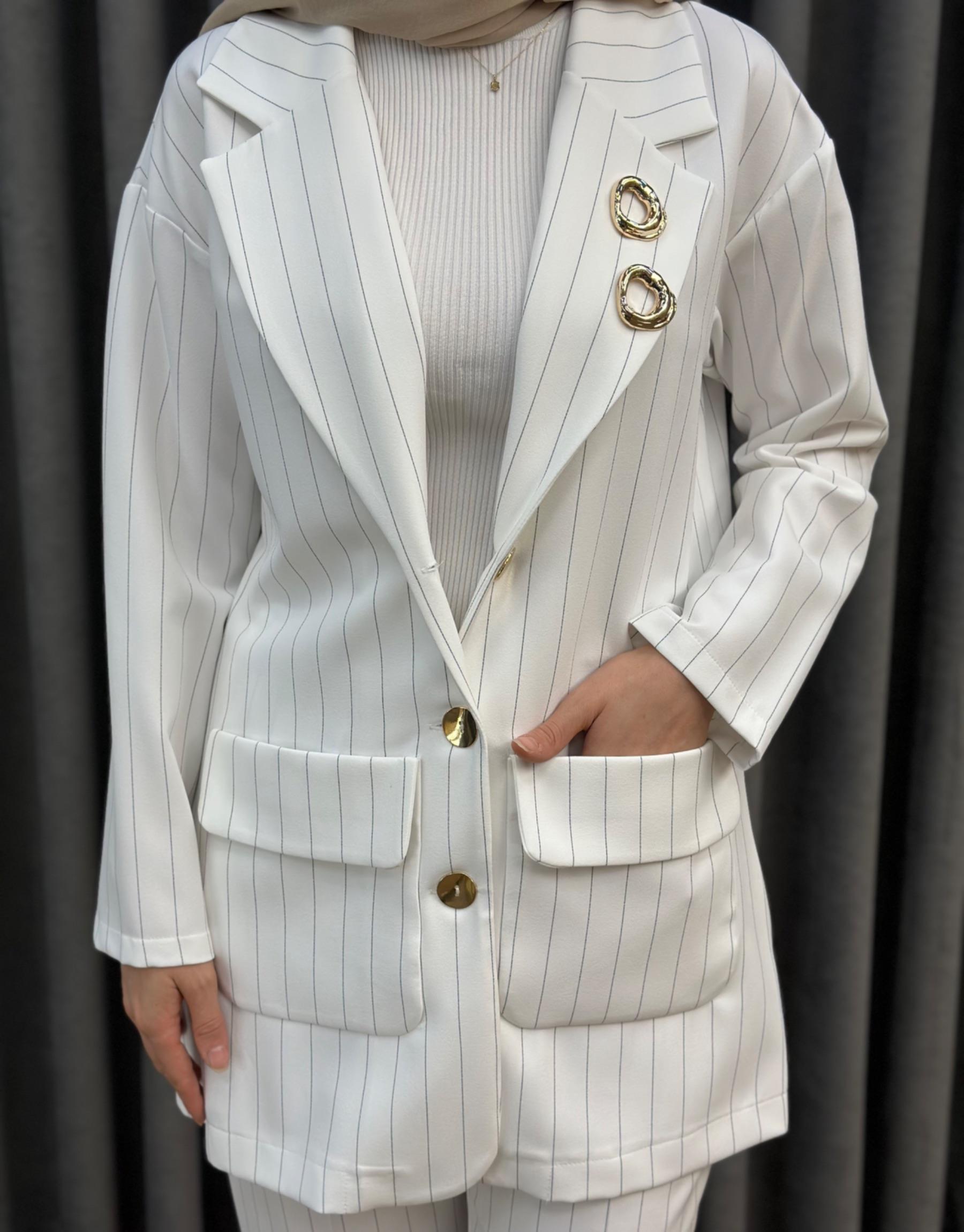 4844 Missemramiss Ekru Çizgili Line Takım | Şura Butik