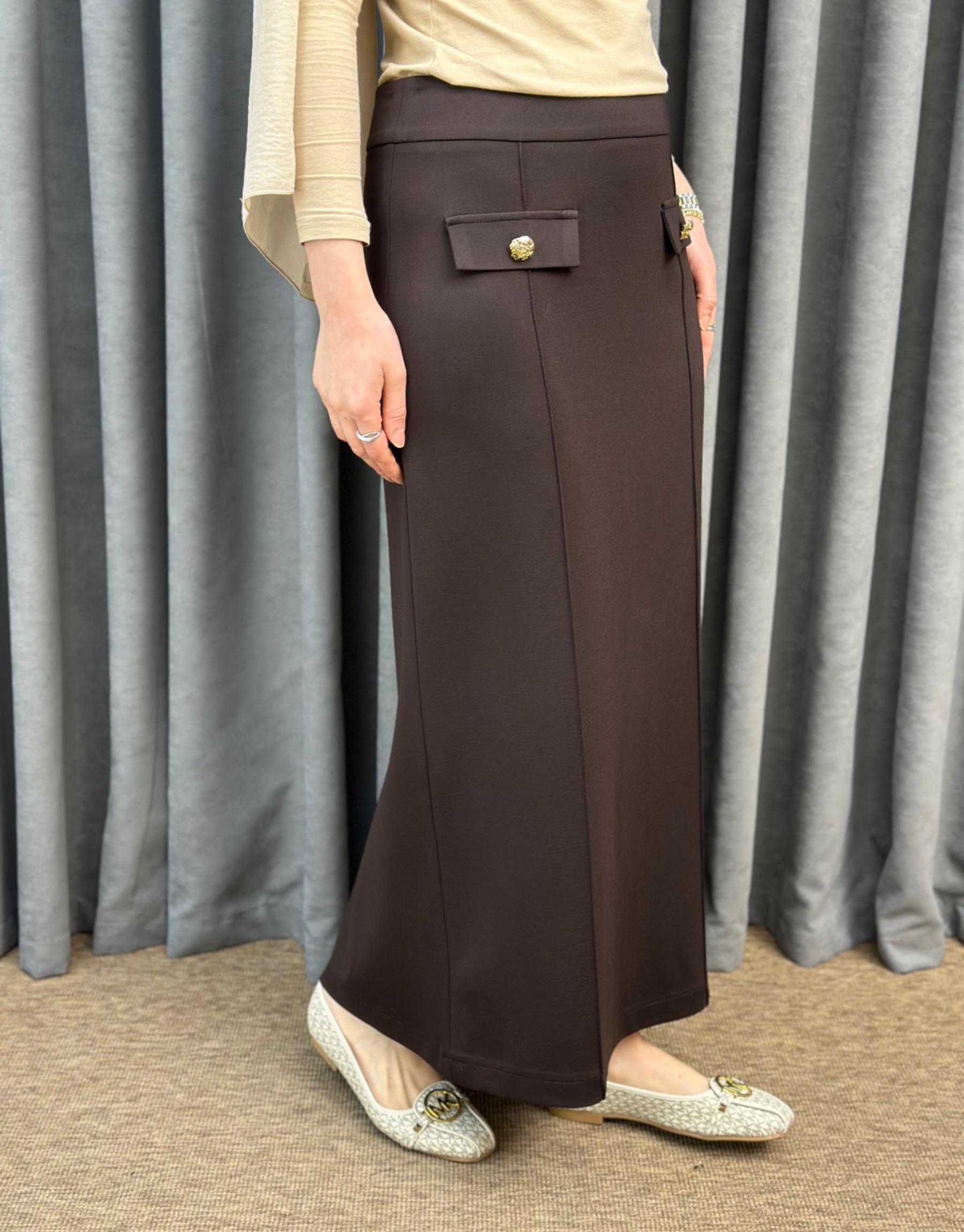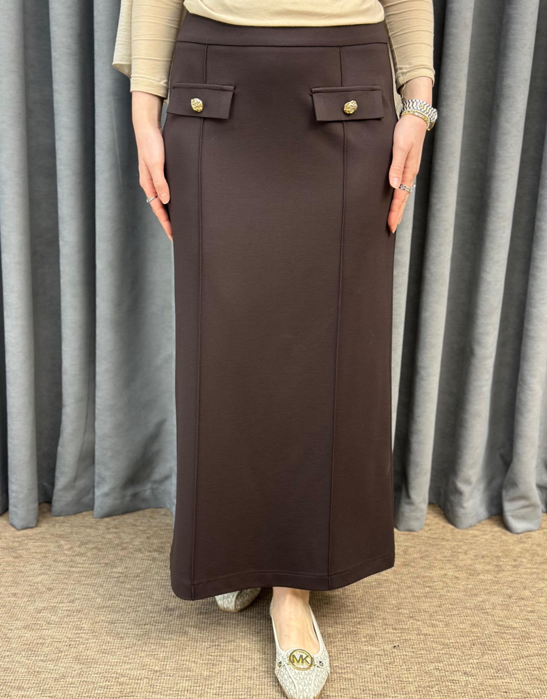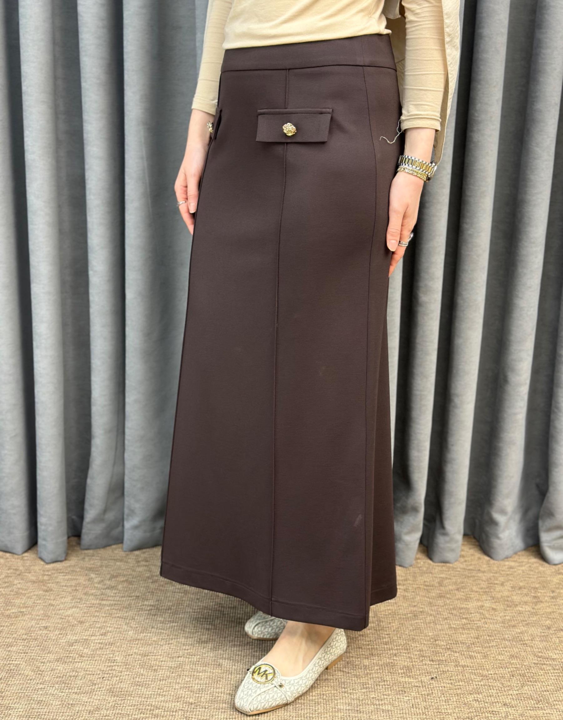 Kahve SZ 5491 Sentez Rozie Yanı Fermuarlı Kloş etek