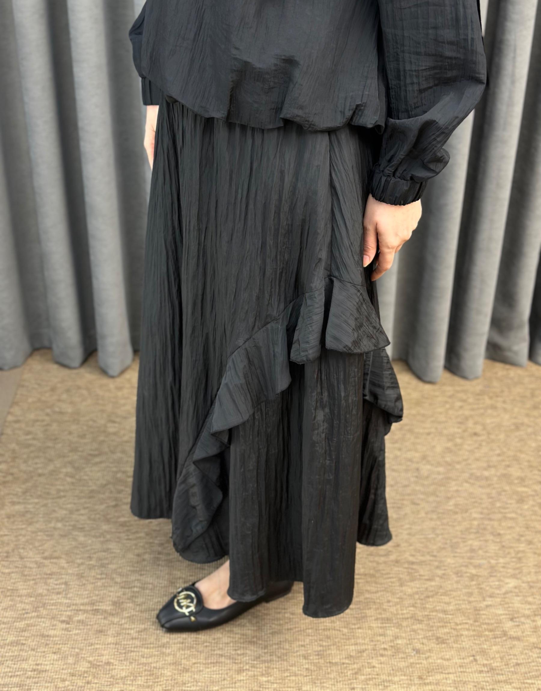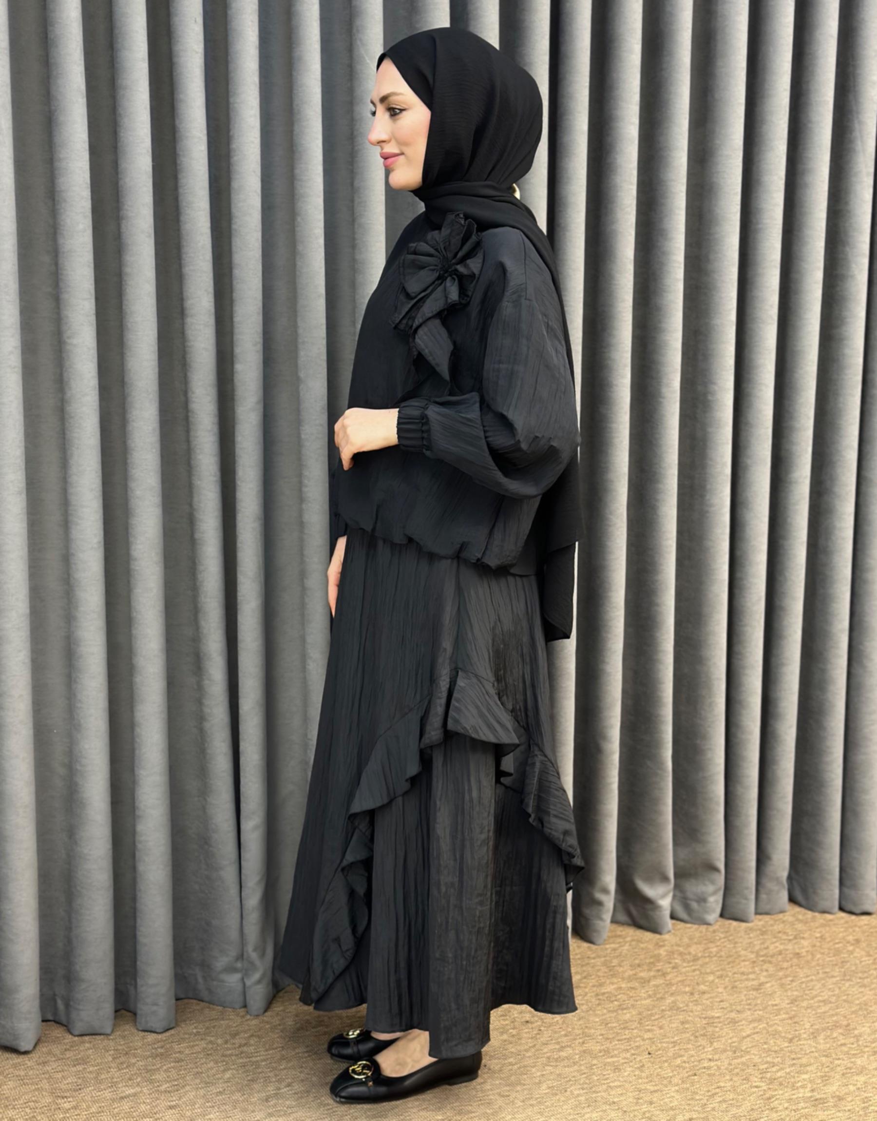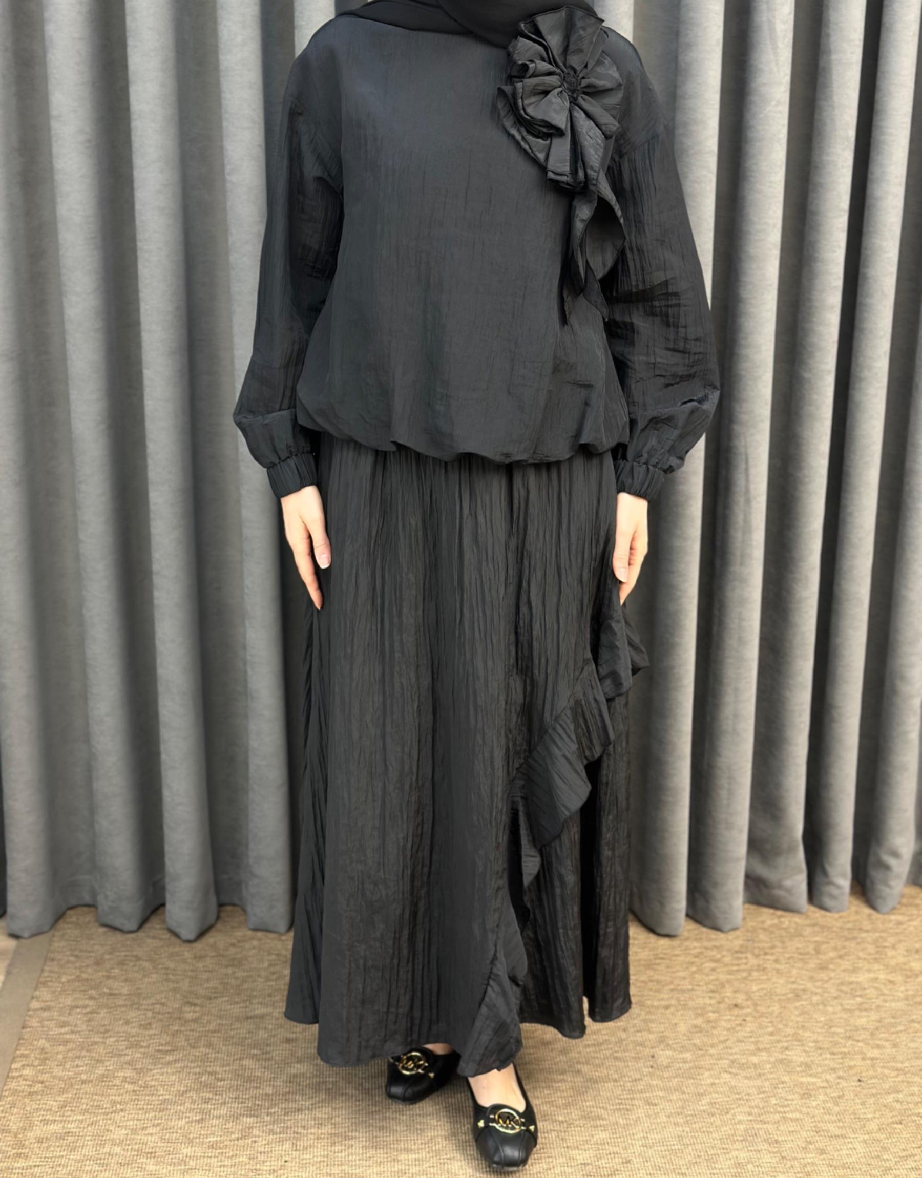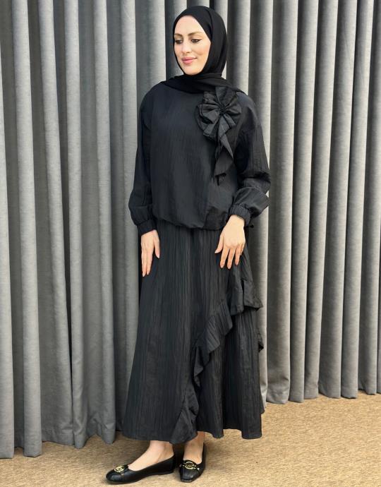 Siyah 3039 Qashe Fırfırlı Etekli TAKIM