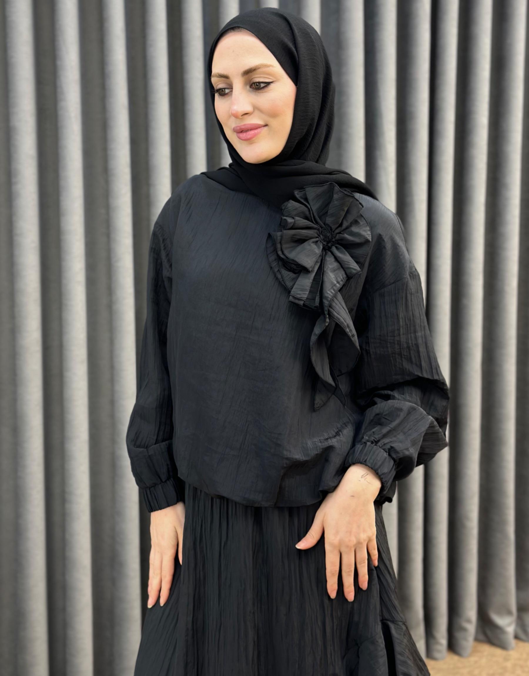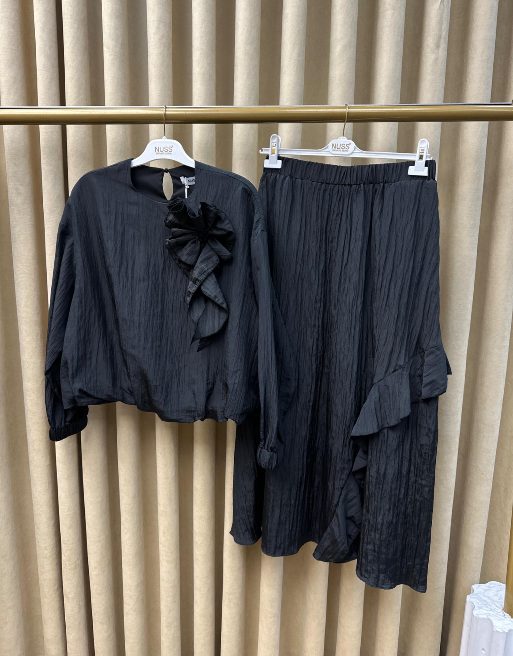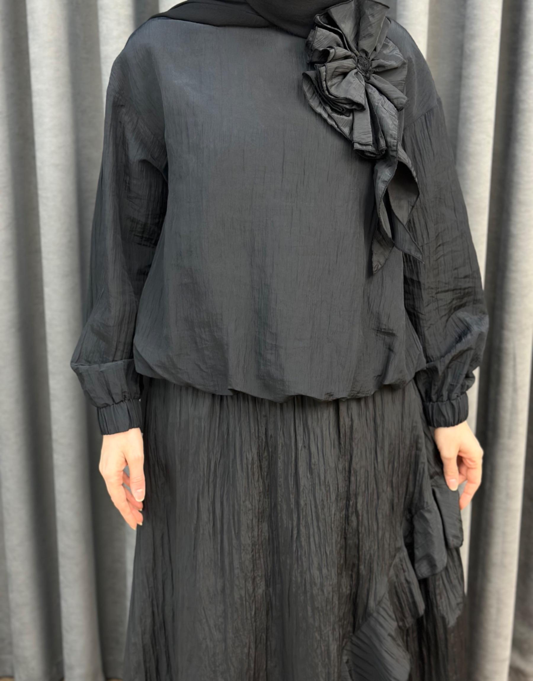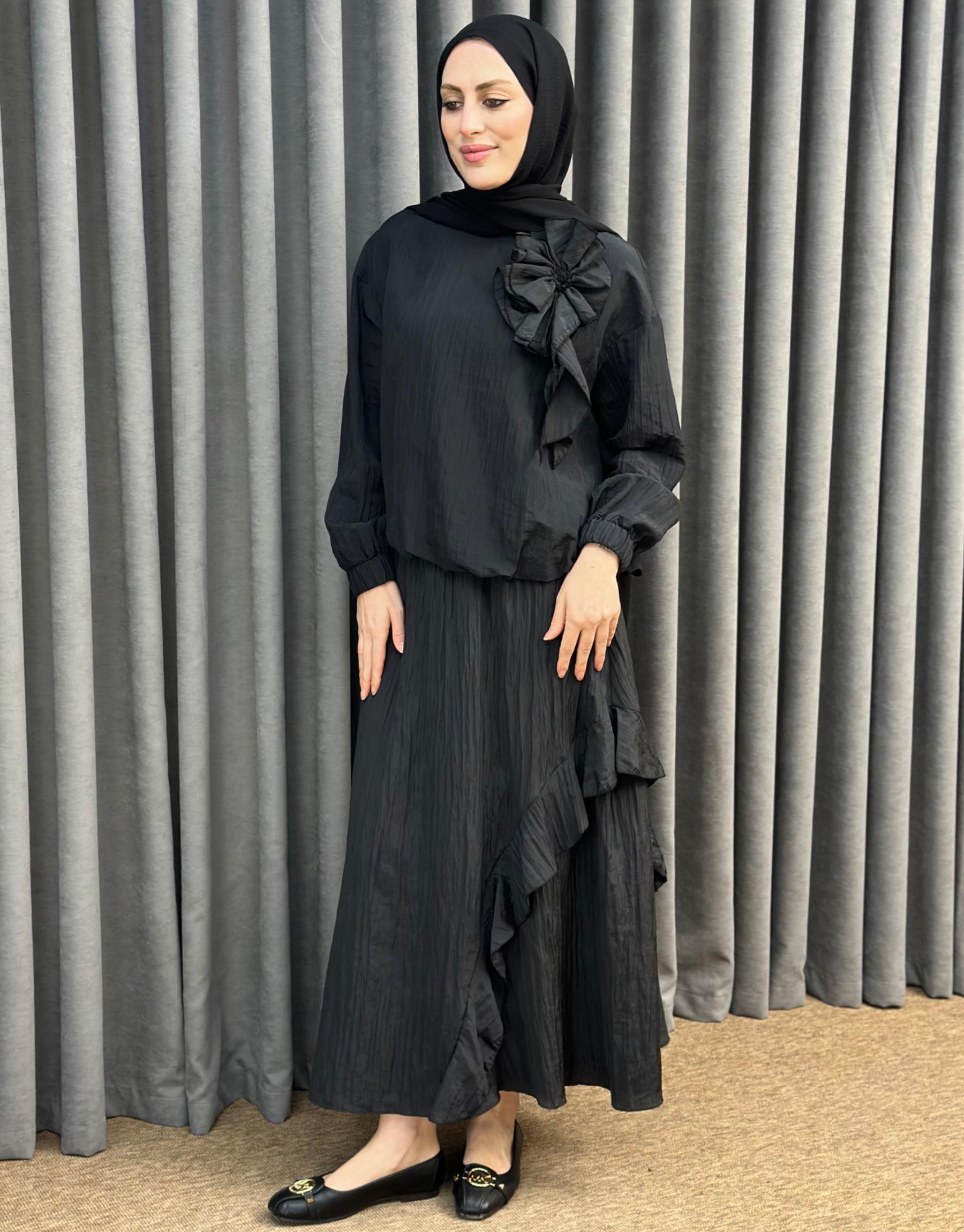 Siyah 3039 Qashe Fırfırlı Etekli TAKIM