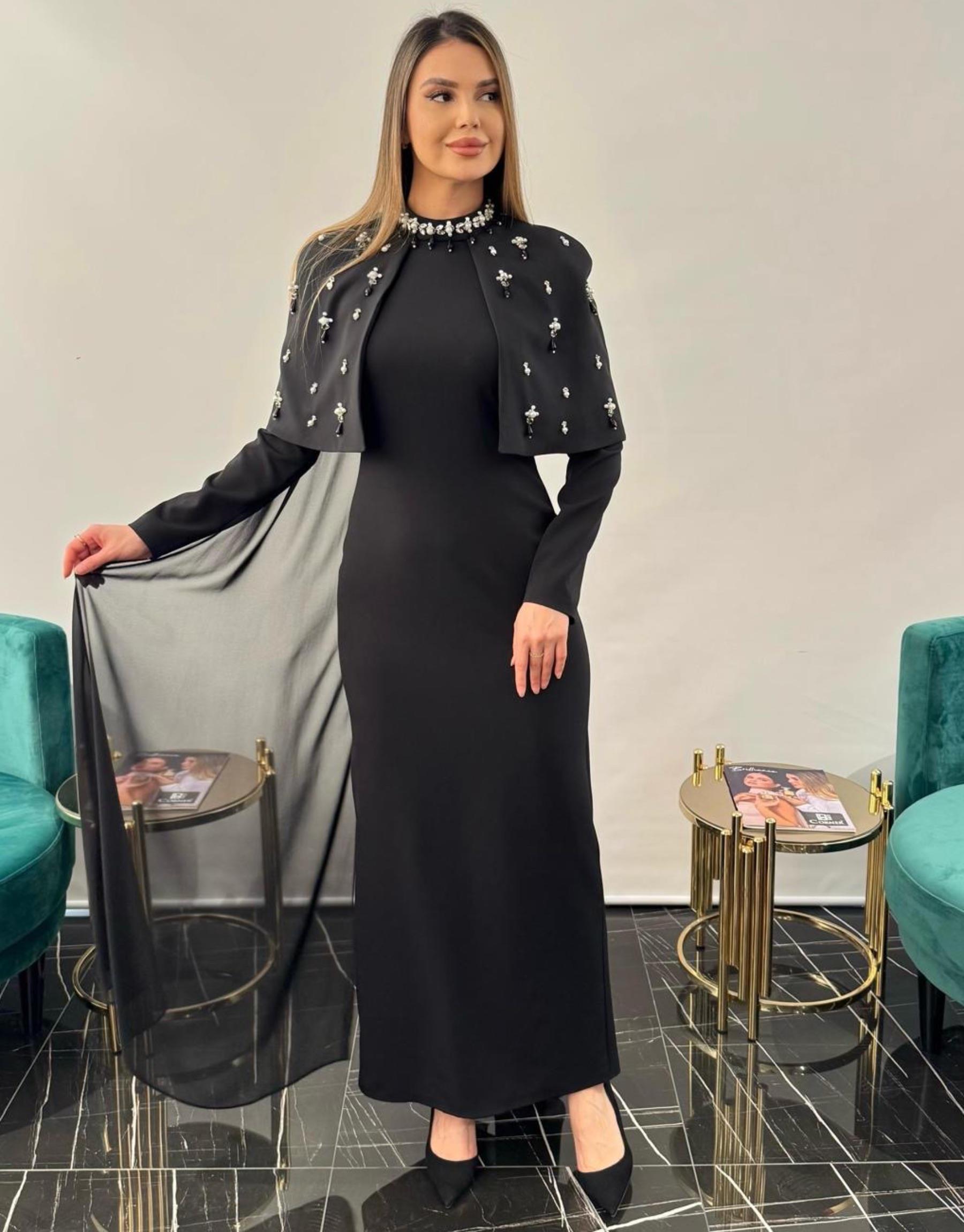 Siyah 2958 White Corner Abiye Elbise