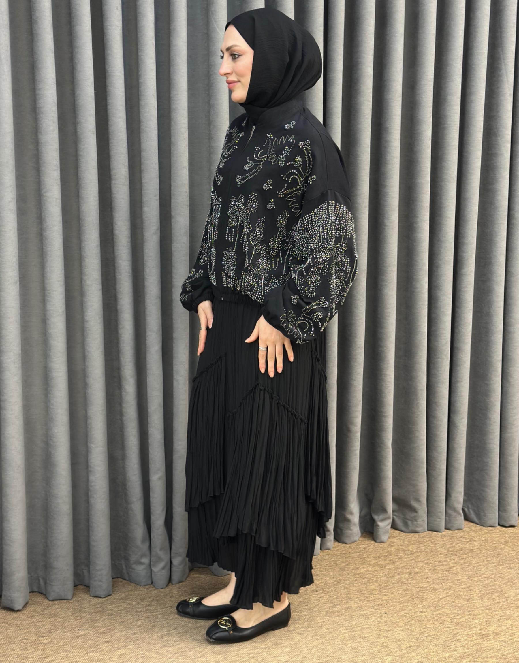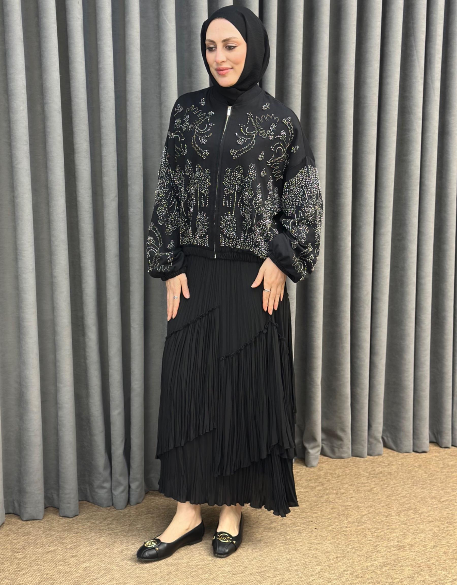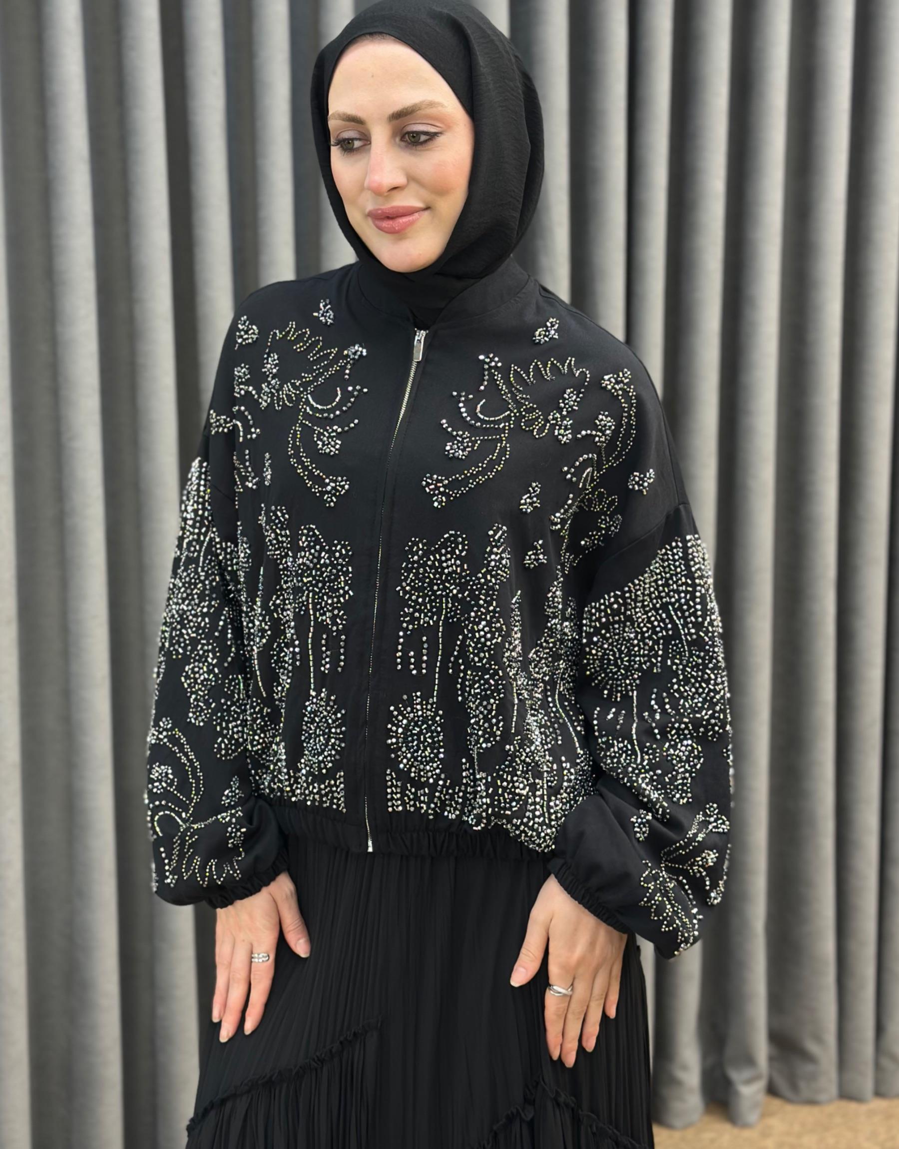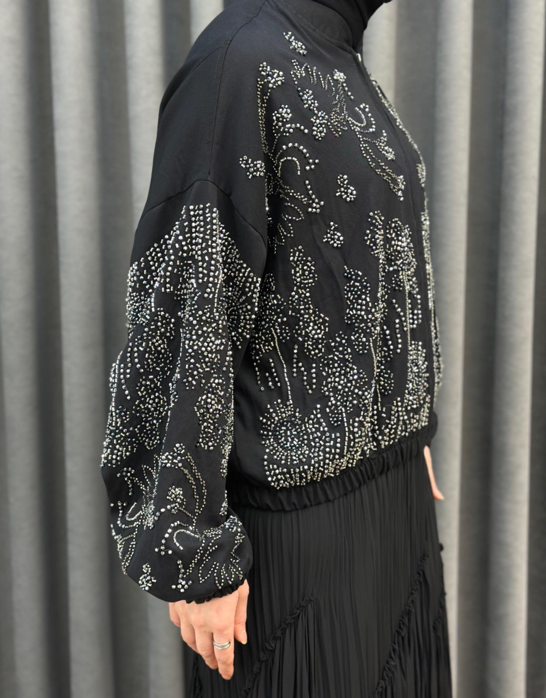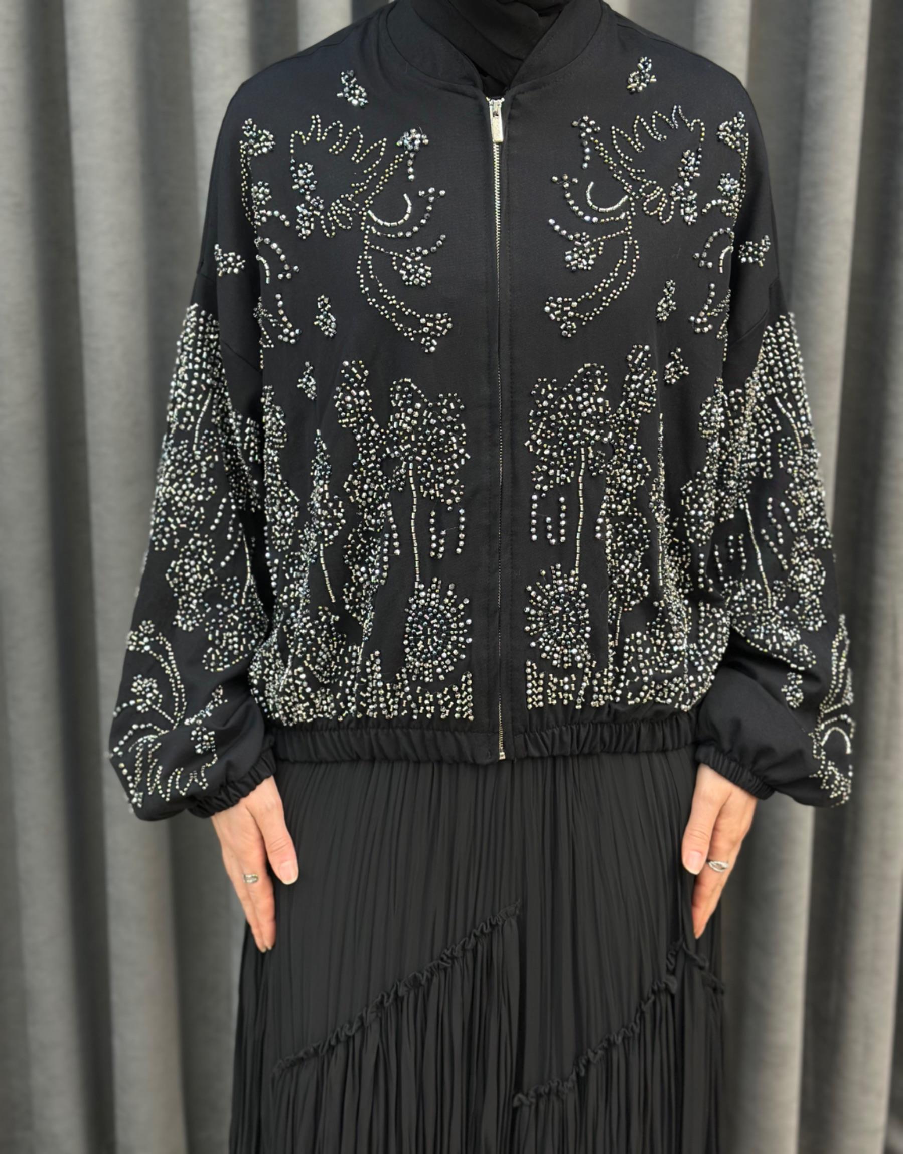 38191 Orfenegro İşlemeli Midi Bomber Ceket | Orfeonegro