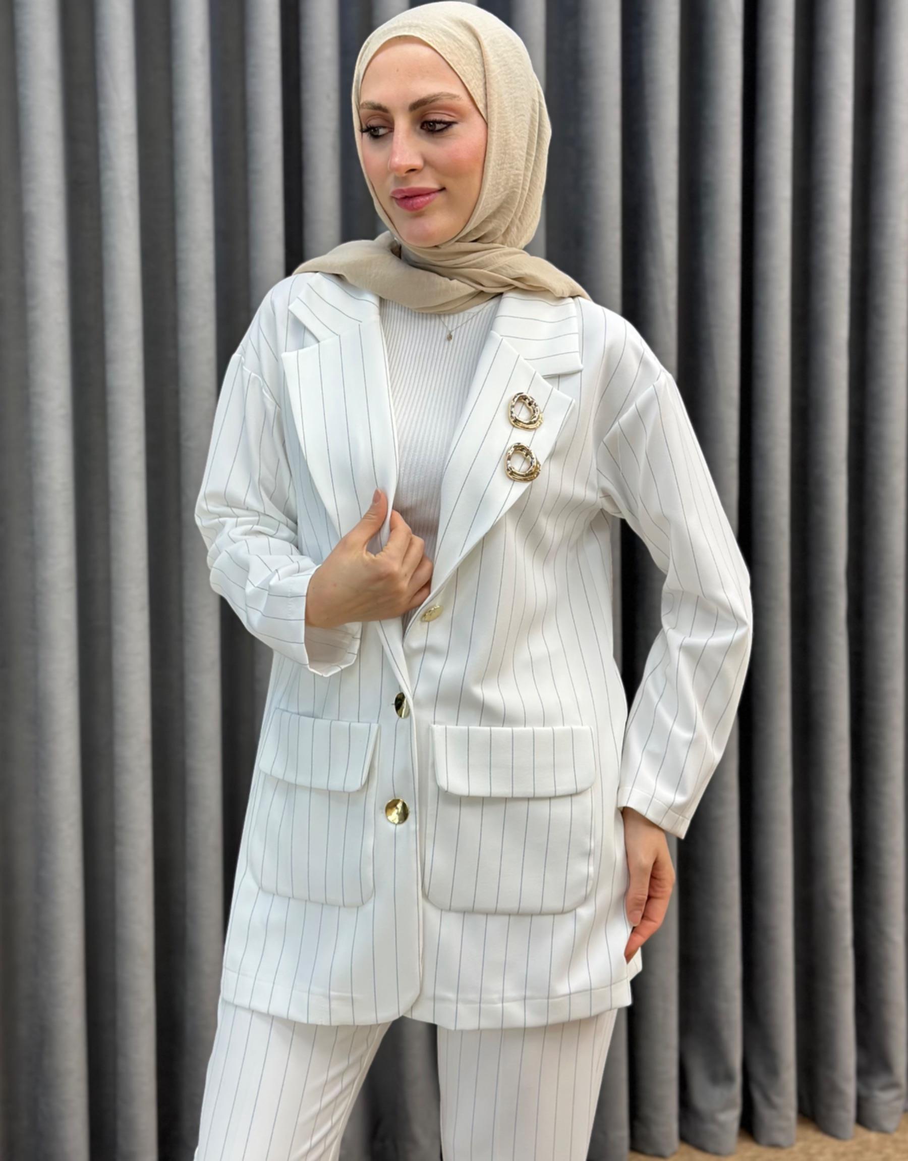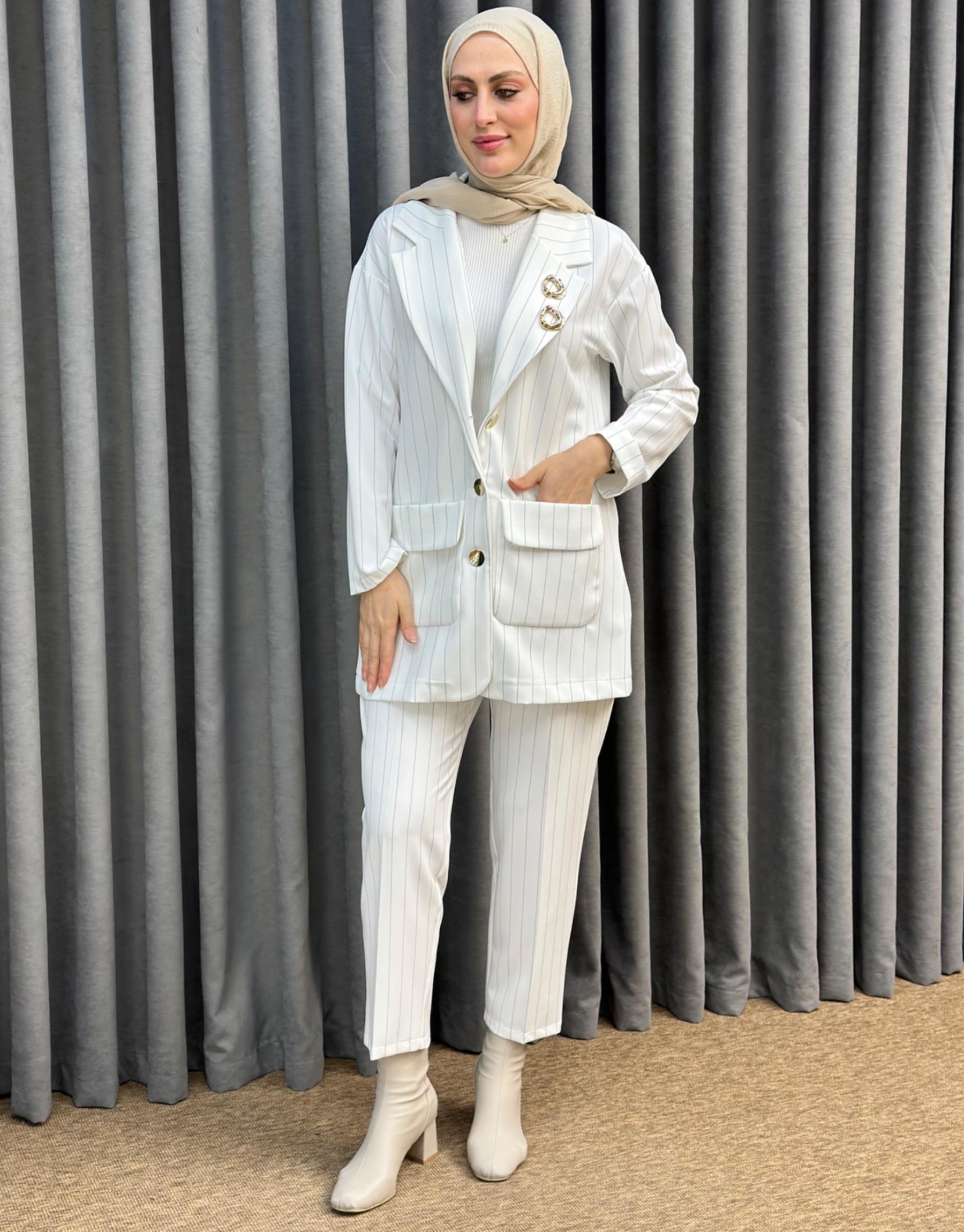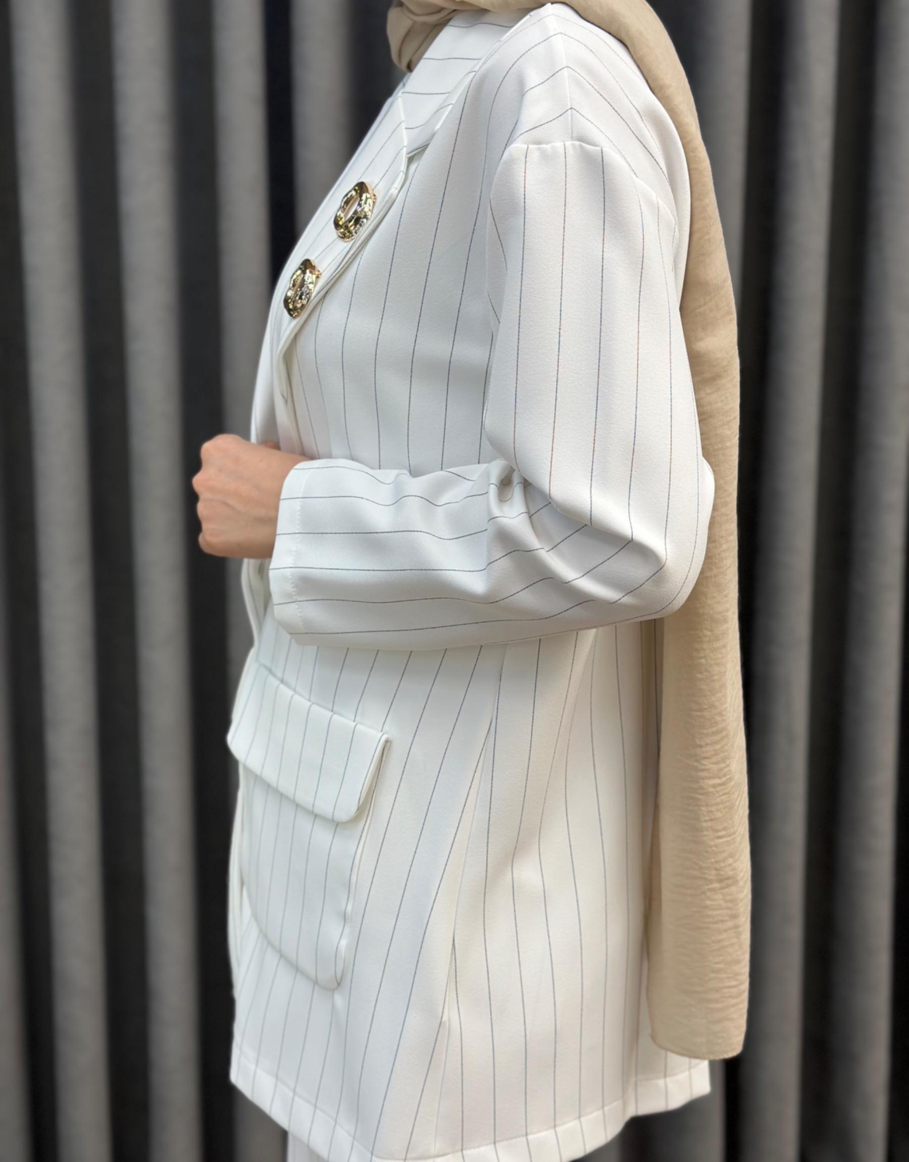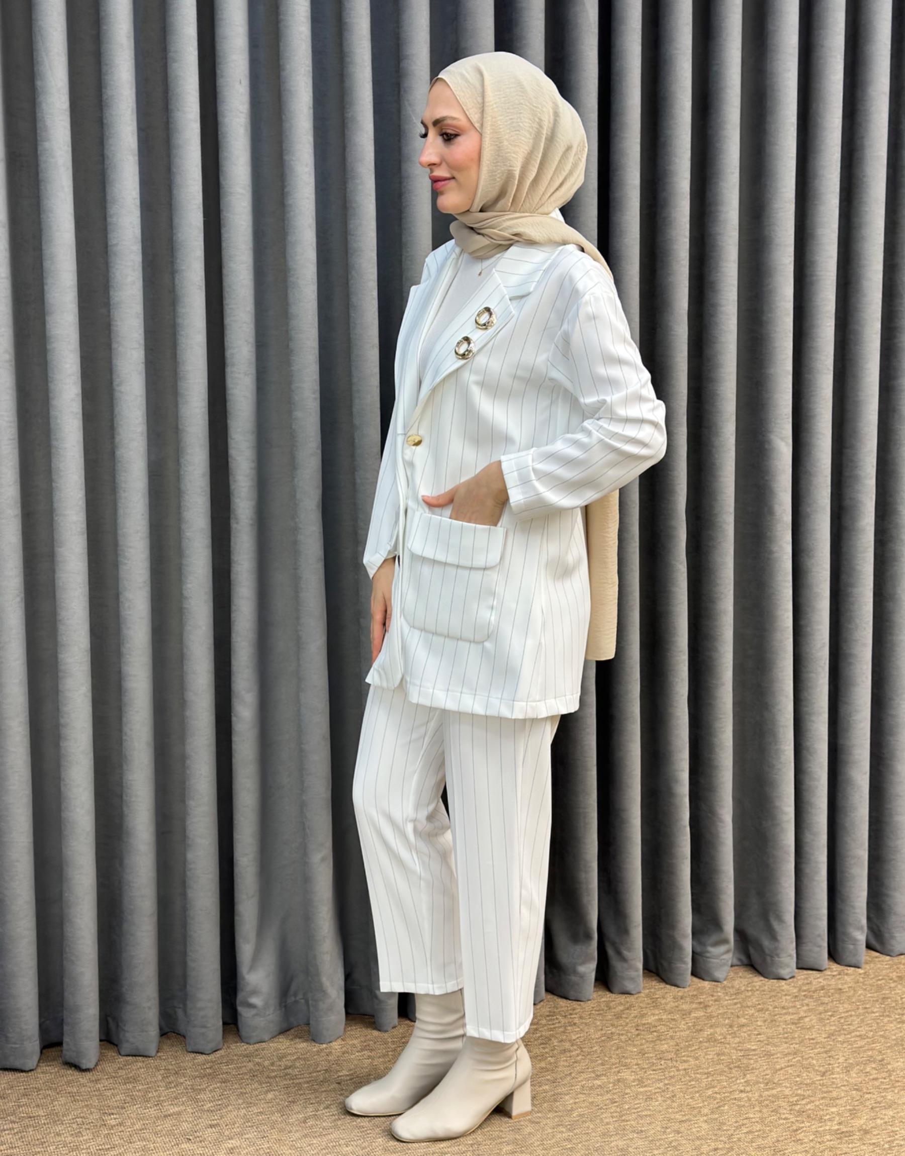 4844 Missemramiss Ekru Çizgili Line Takım | Şura Butik